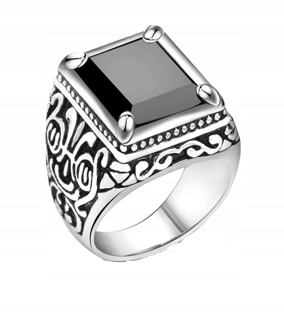 SYGNET MESKI Z CZARNYM KAMIENIEM.