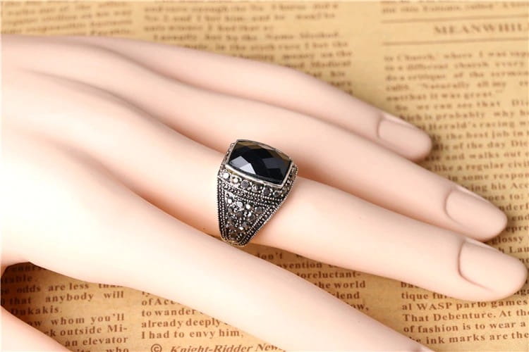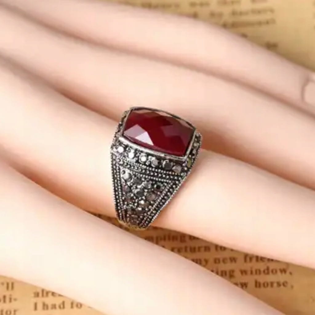 Turecki posrebrzany sygnet z bordowym oczkiem