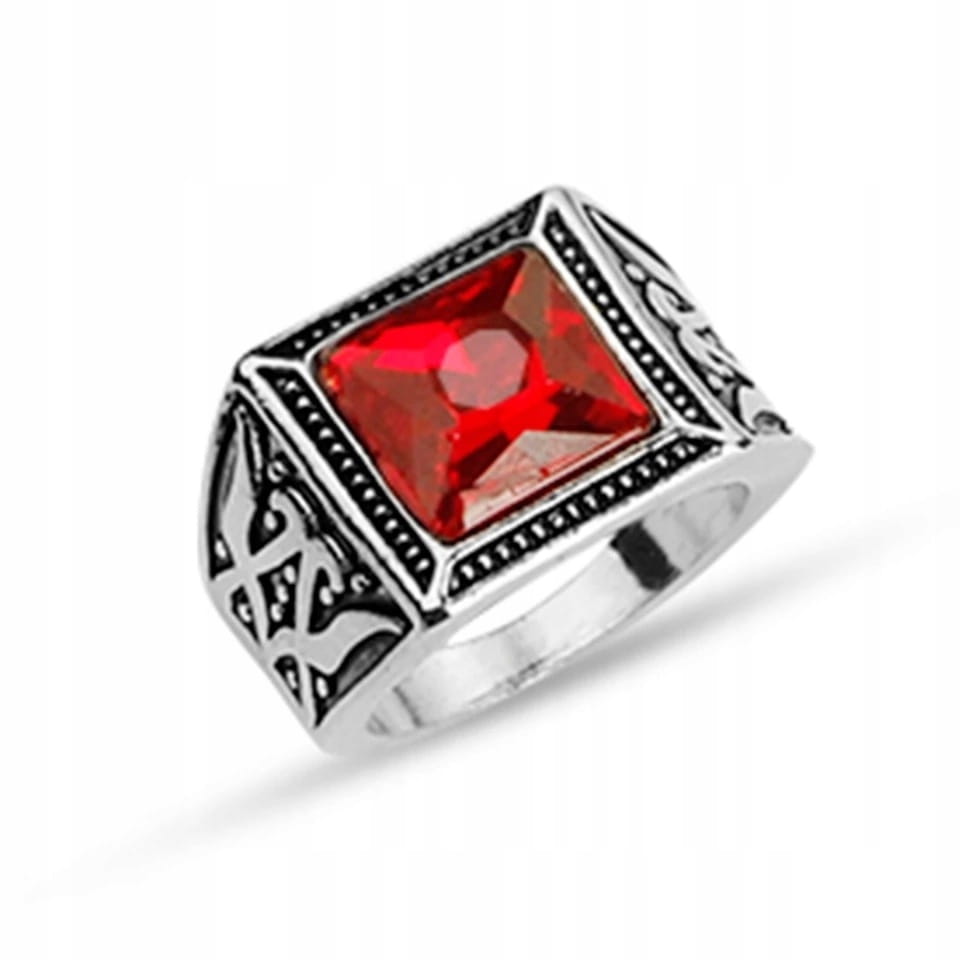 Turecki sygnet męski posrebrzany czerwony 6 nr 32