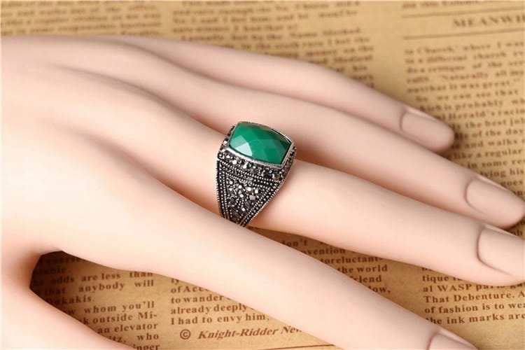 Turecki sygnet męski posrebrzany zielony 9 nr 35