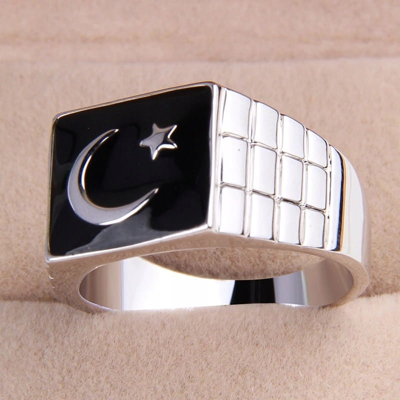Turecki posrebrzany sygnet z gwiazdą i półksiężycem