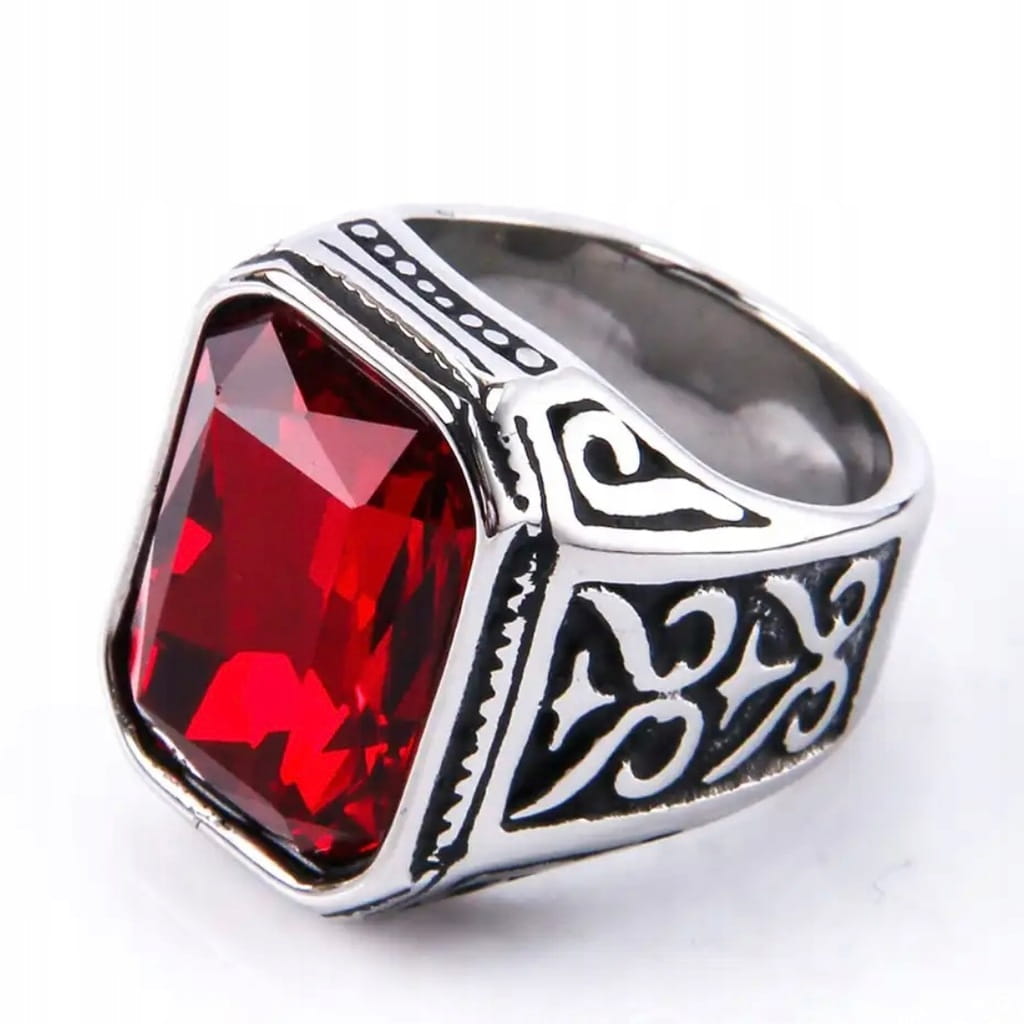 TURECKI POSREBRZANY SYGNET Z CZERWONYM KAMIENIEM.