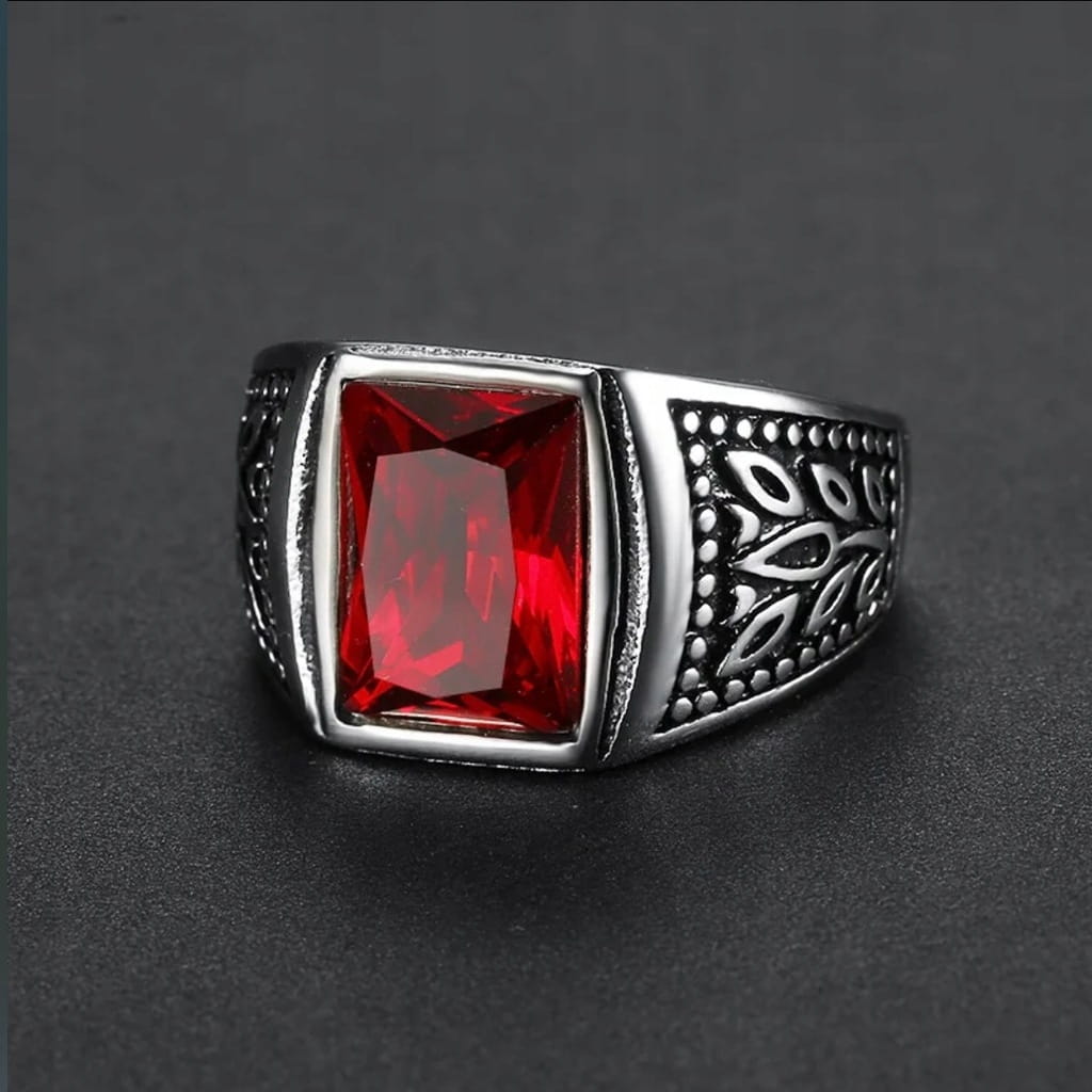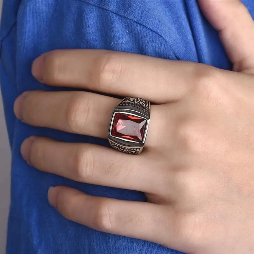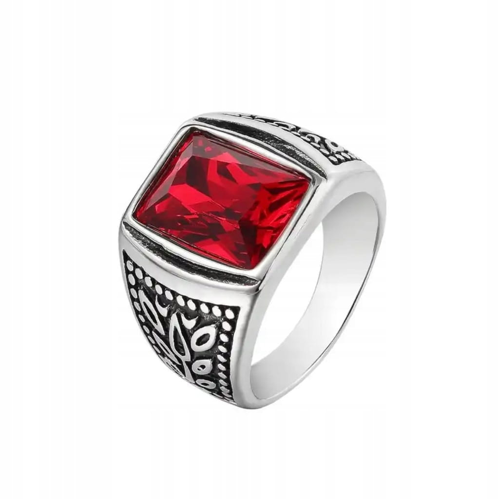 TURECKI POSREBRZANY SYGNET Z CZERWONYM KAMIENIEM.