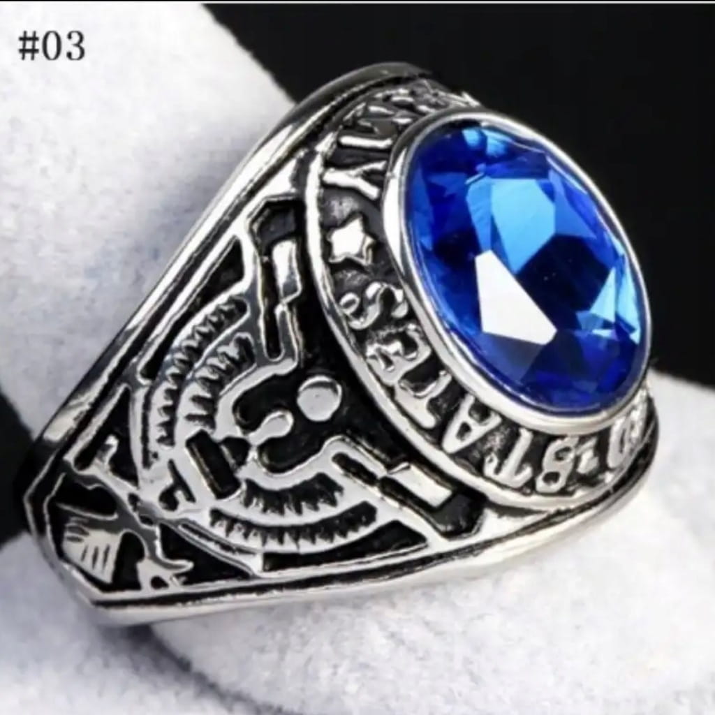 ✅Posrebrzany sygnet z szafirowym oczkiem.