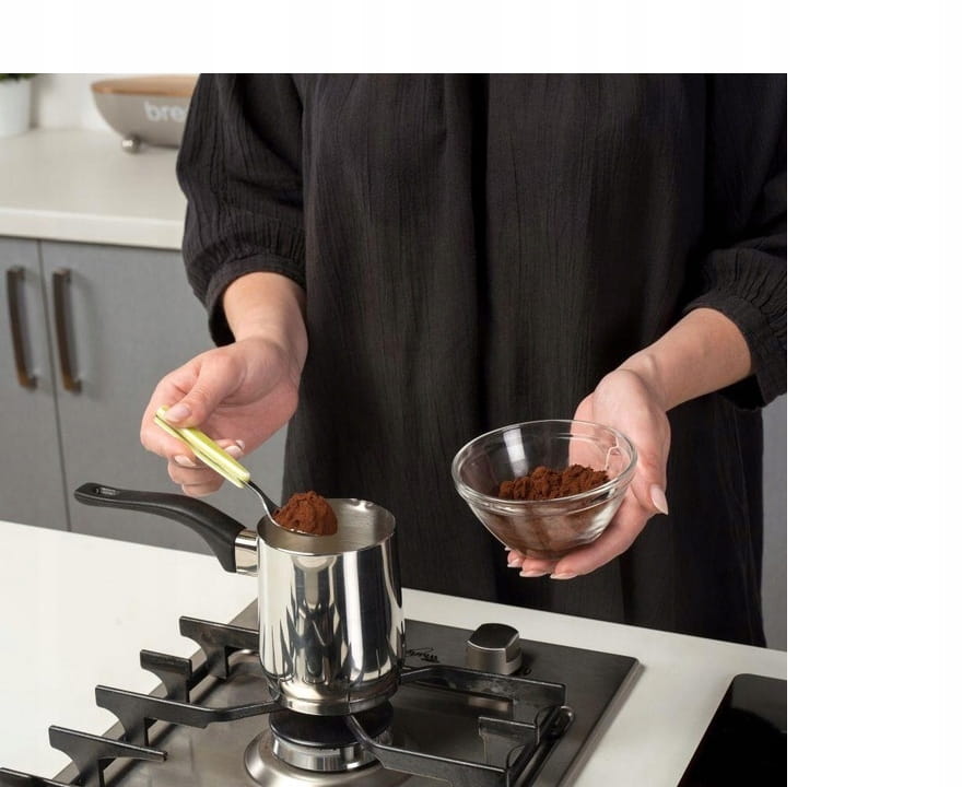 Stalowy tygielek do parzenia kawy po turecku to prawdziwy niezbędnik dla każdego miłośnika tego napoju. W celu uzyskania wyjątkowego smaku kawy po turecku należy wsypać zmielone ziarna kawy do tygielka, następnie zalać wodą i podgrzewać na małym ogniu. Należy powtarzać tą czynność kilkukrotnie, tak aby nie doprowadzić do wrzenia.