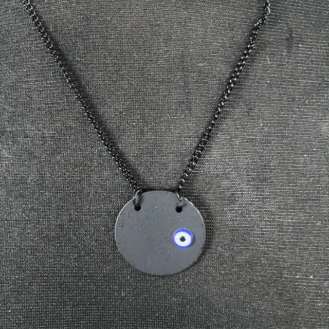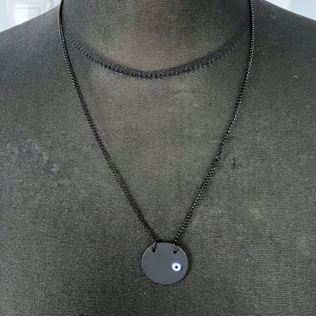 Wisiorek męski turecki Oko Proroka Evil Eye oryginalny czarny stal 123