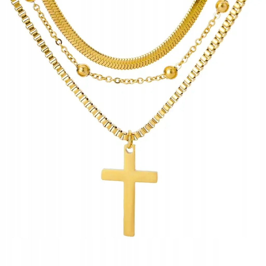 Wisiorek naszyjnik potrójny z krzyżykiem łańcuszek prezent stal 67
