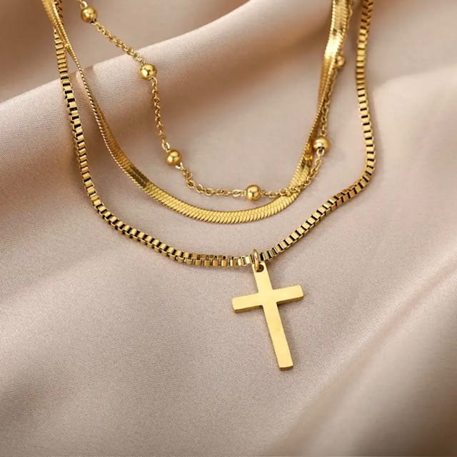 POTRÓJNY NASZYJNIK Z KRZYŻYKIEM.