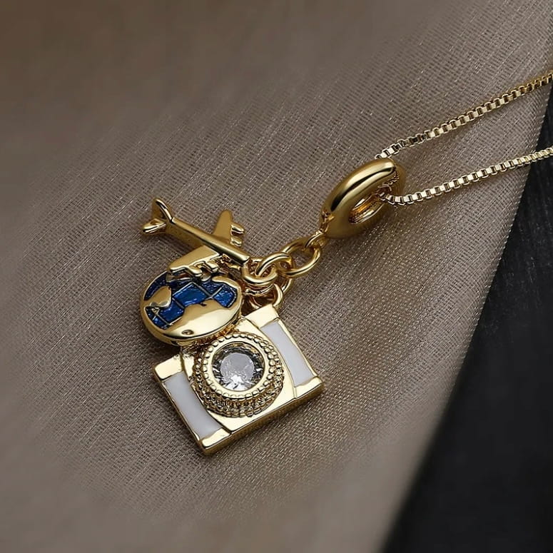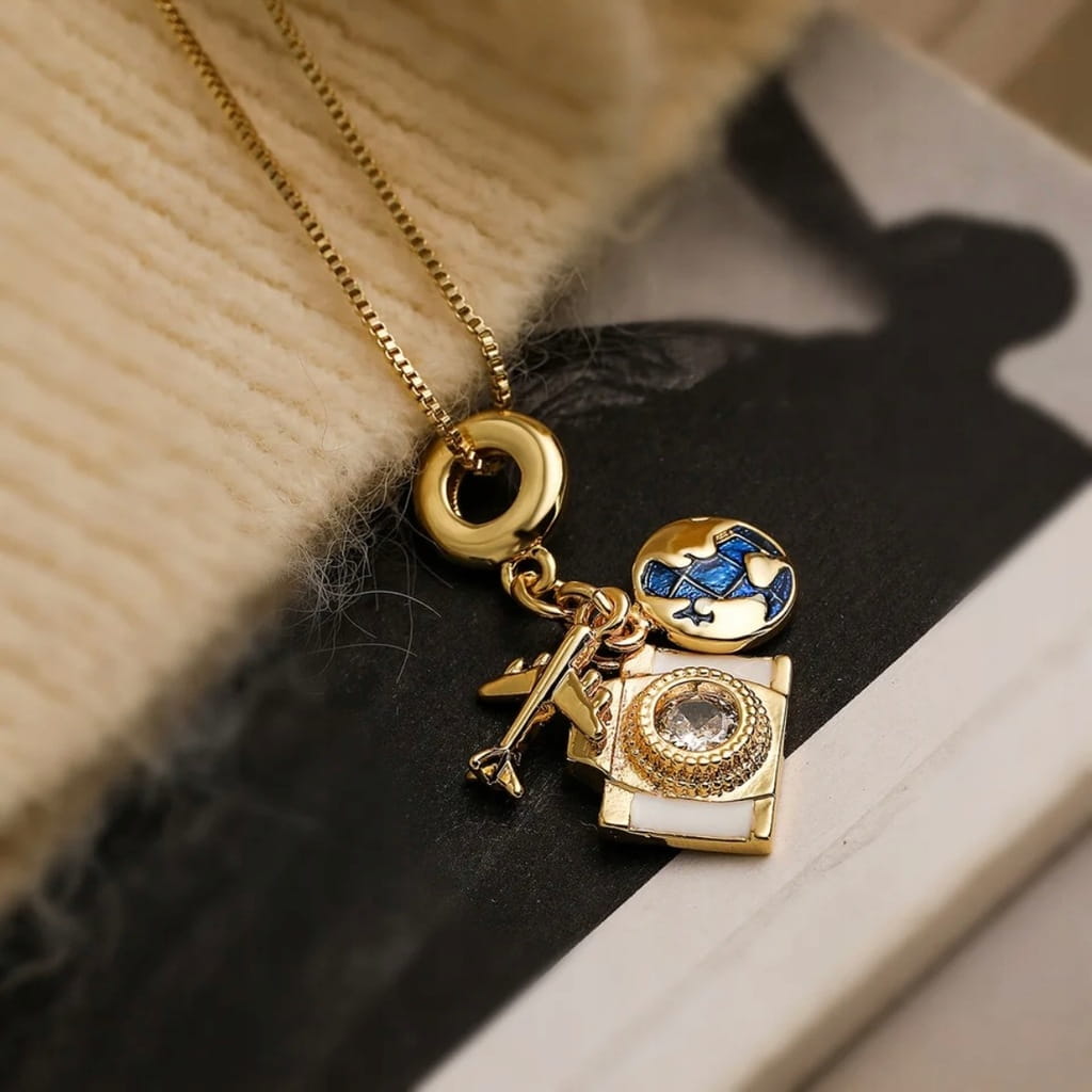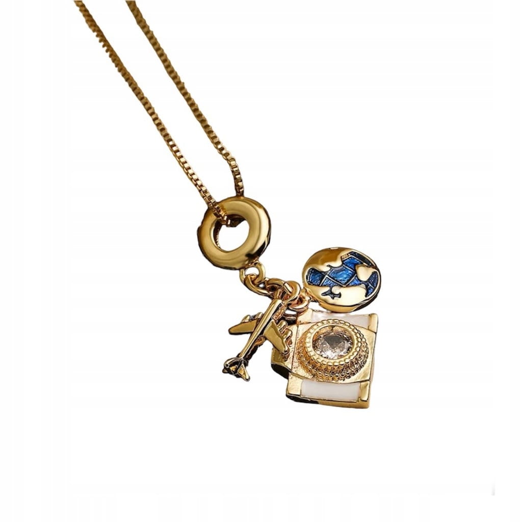 ✅Pozłacany wisiorek z zawieszkami dla podróżnika.
