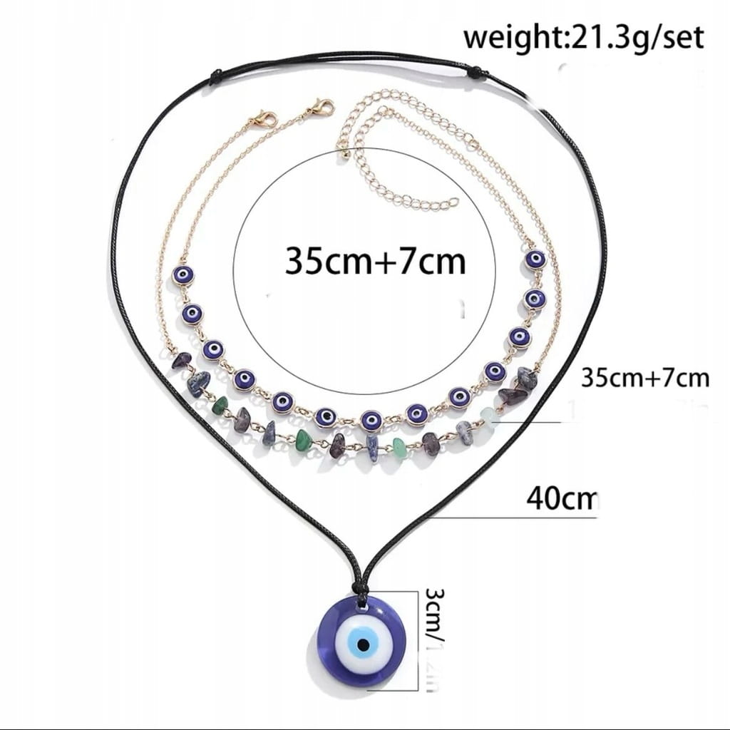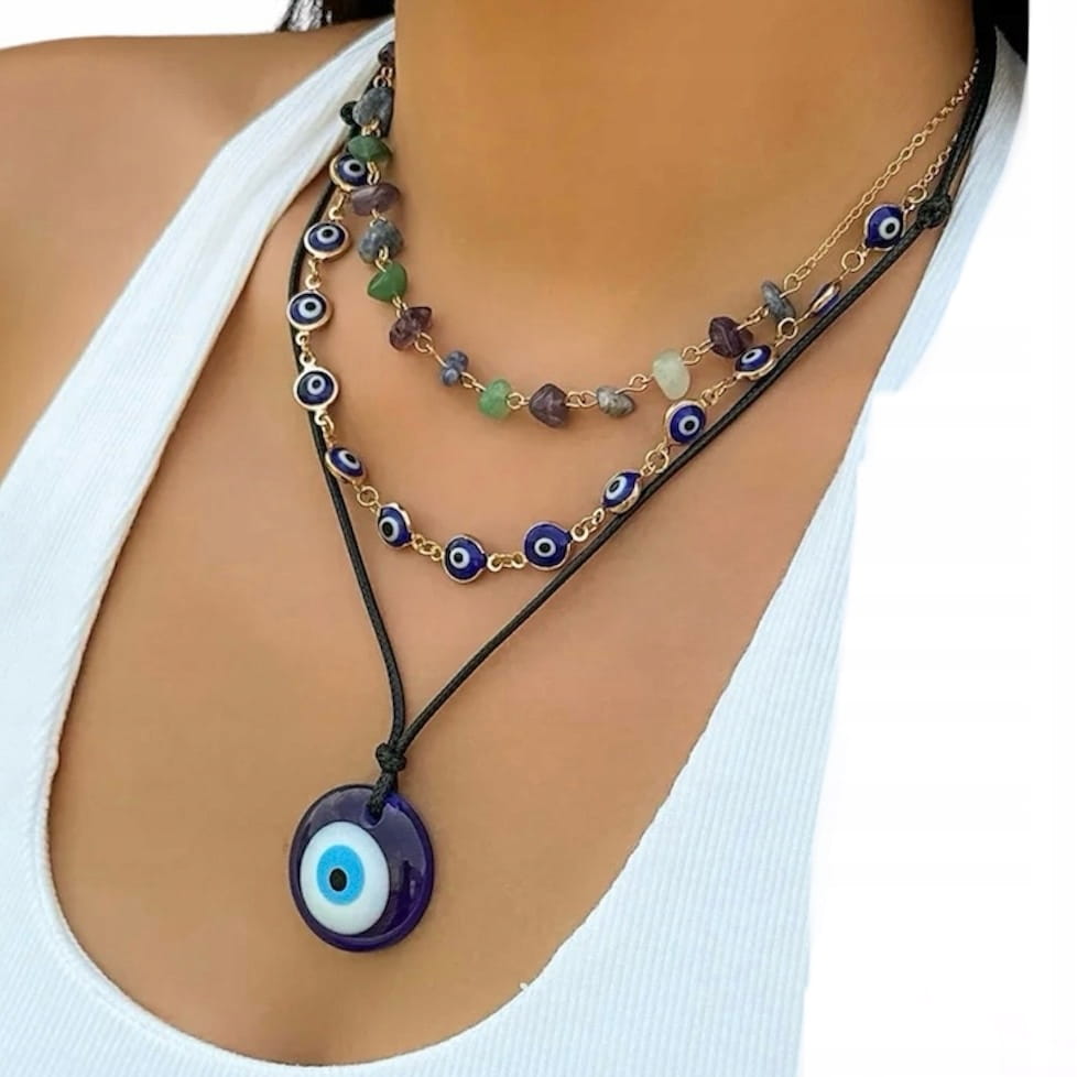 Turecki potrójny naszyjnik wisiorek z Okiem Proroka.