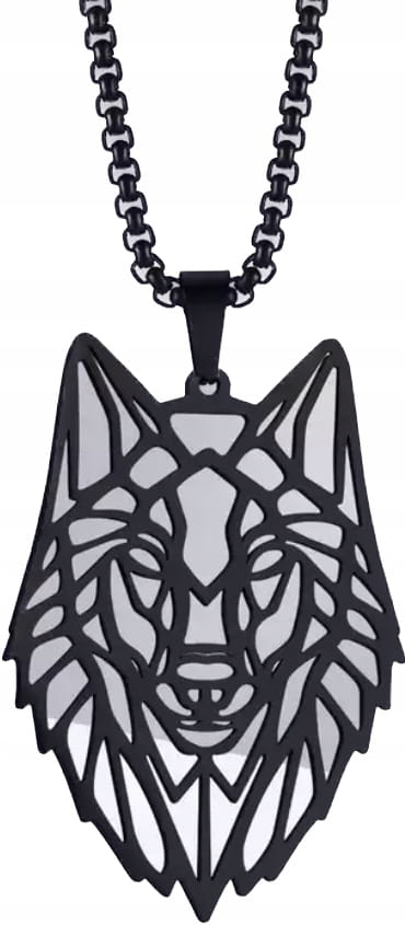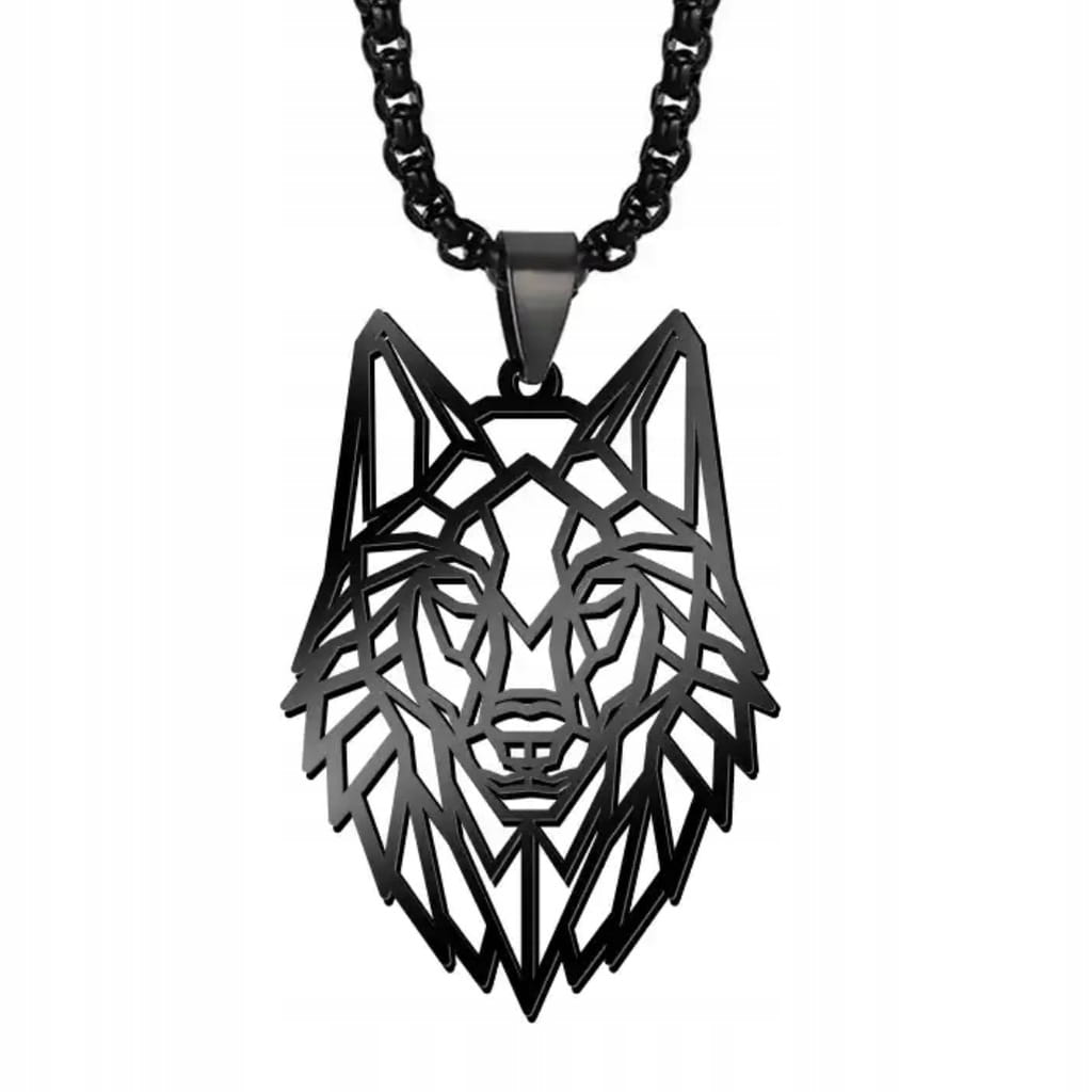 Wisiorek wilk czarny łańcuszek z zawieszką naszyjnik stal nierdzewna 84