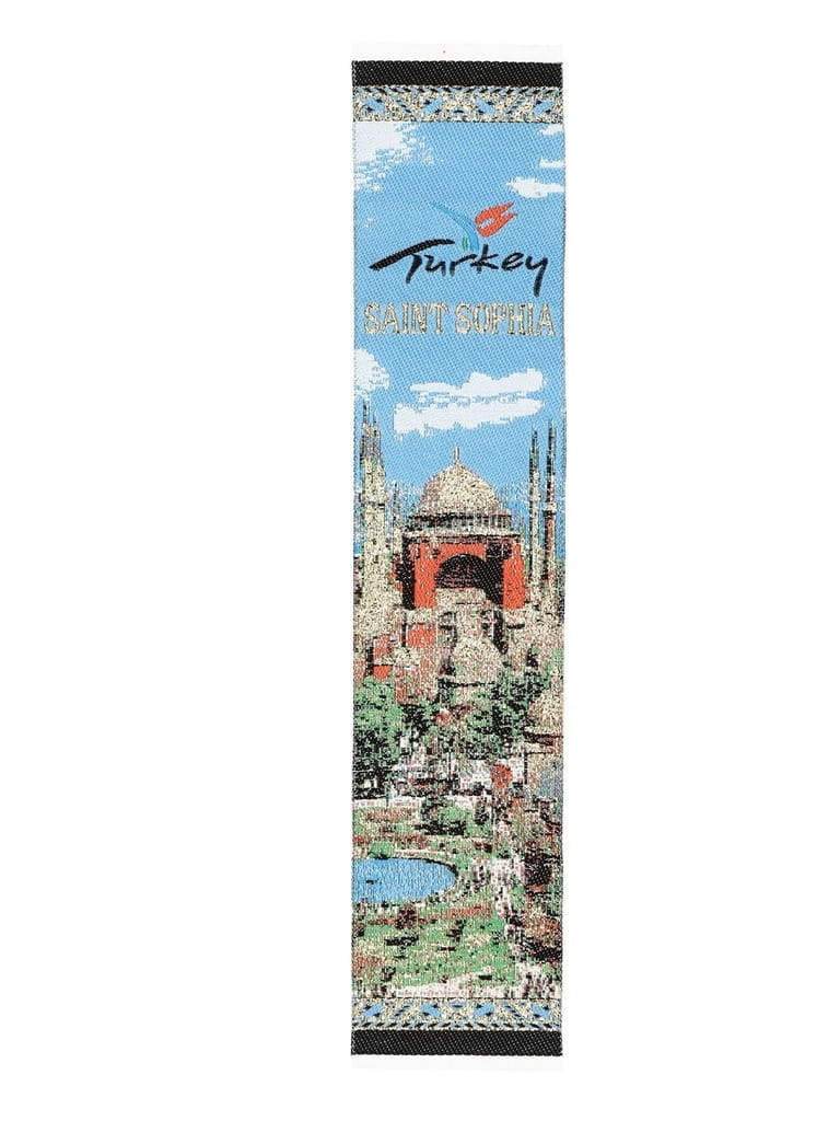 Przedmiotem aukcji jest doskonała na prezent, widoczna na zdjęciu ozdobna ręcznie robiona materiałowa zakładka do książki. Zakładka posiada wizerunek Aya Sofya (Hagia Sophia) oraz napis "Turkey Saint Sophia".