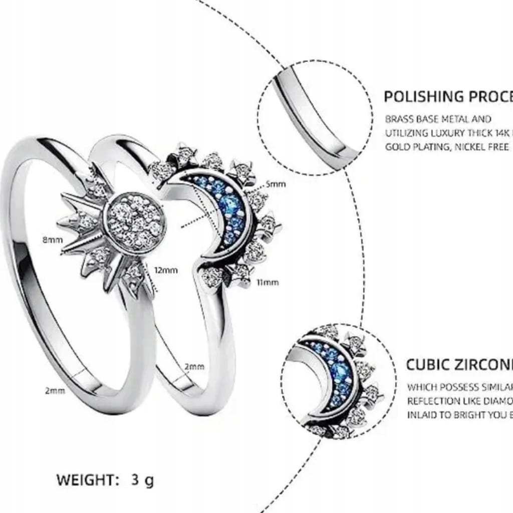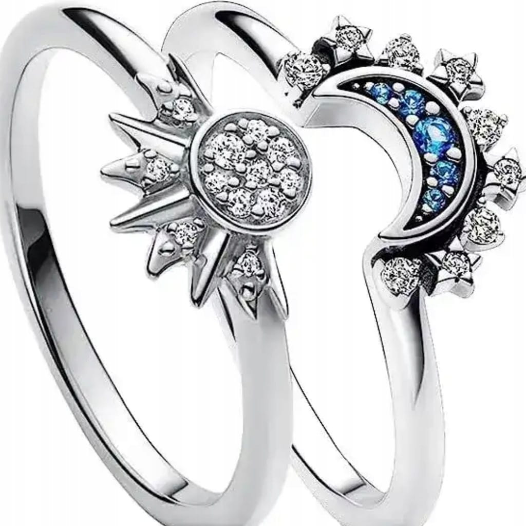 Zestwaw dwóch pierścionków pierścionki słońce księżyn prezent 76