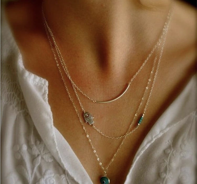Złoty łańcuszek naszyjnik oko evil eye hamsa 6